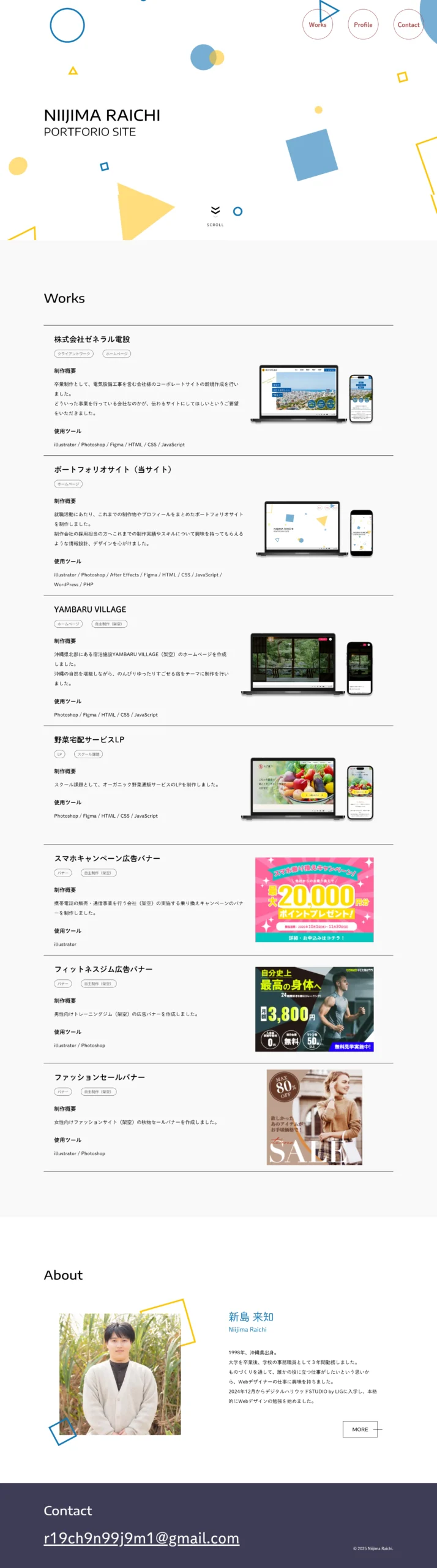 就職活動にあたり、これまでの制作物やプロフィールをまとめたポートフォリオサイトを制作しました。